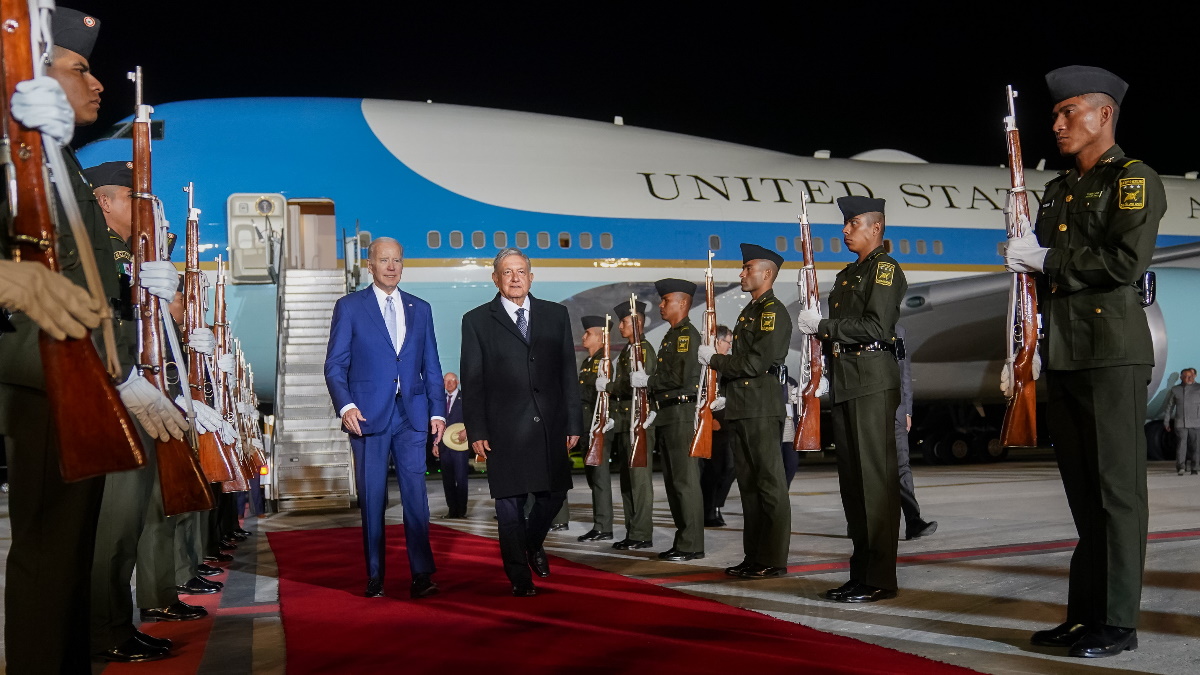 Biden y el presidente mexicano se estrecharon la mano a pie de pista, conversaron unos minutos y posteriormente abordaron juntos la Bestia, el vehículo blindado que traslada al presidente estadounidense, para dirigirse hacia el hotel donde se hospedará el mandatario, en Polanco.