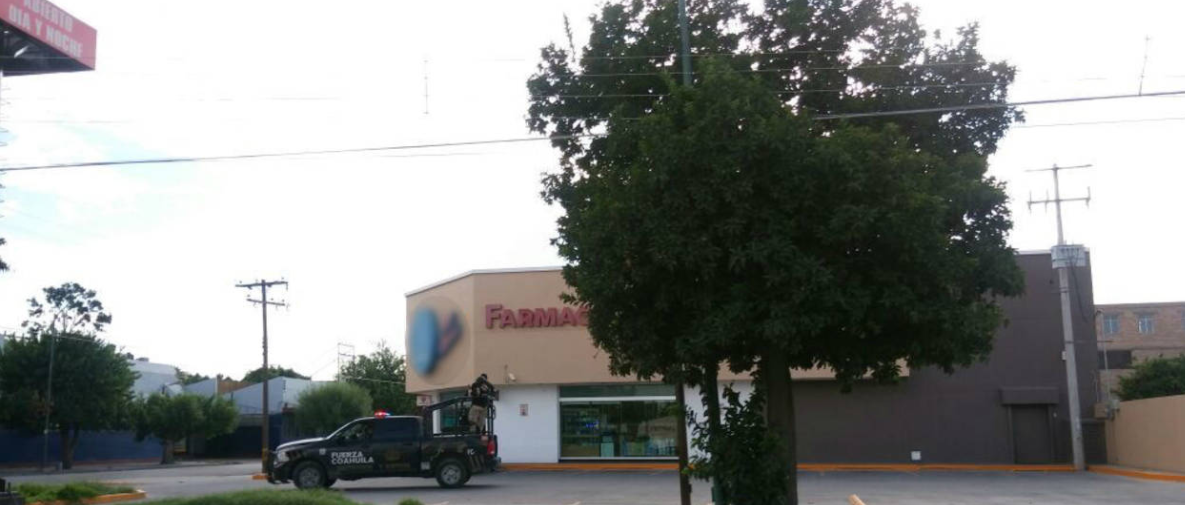 Dos jóvenes, portando armas cortas de fuego, amagaron a los encargados de una farmacia ubicada en la avenida Morelos y calle 12 en el Centro de Torreón, Coahuila.