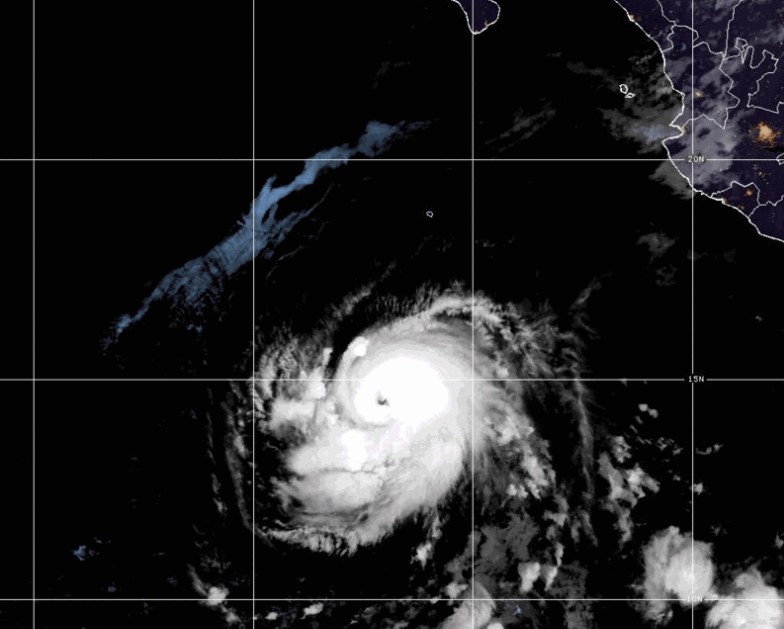 El ciclón, que nunca tocó tierra y dejó lluvias en el occidente mexicano en días pasados, ahora tiene vientos máximos sostenidos de 155 kilómetros por hora, rachas de 195 kilómetros por hora y un desplazamiento hacia el oeste a 31 kilómetros por hora.
