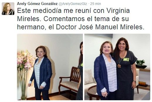 La procuradora Arely Gómez González informó mediante su cuenta de Twitter que el día de hoy se reunió con Virginia Mireles, hermana del ‘Doctor Mireles’, y que ahí le expuso esta decisión del Gobierno Federal.