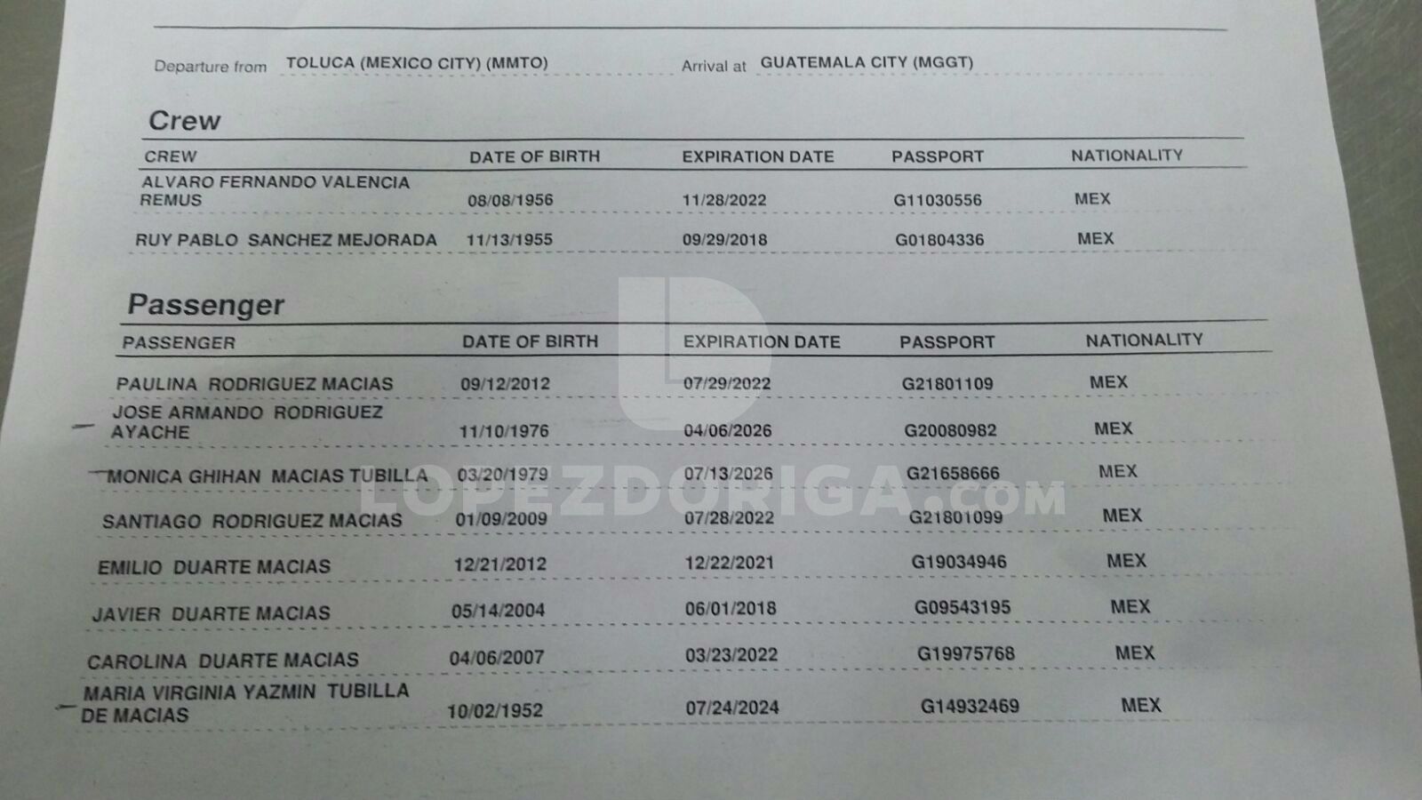 Estos son los datos del vuelo en el que viajó el familiar del exgobernador, registrado como José Armando Rodríguez Ayache, junto con los tres niños: