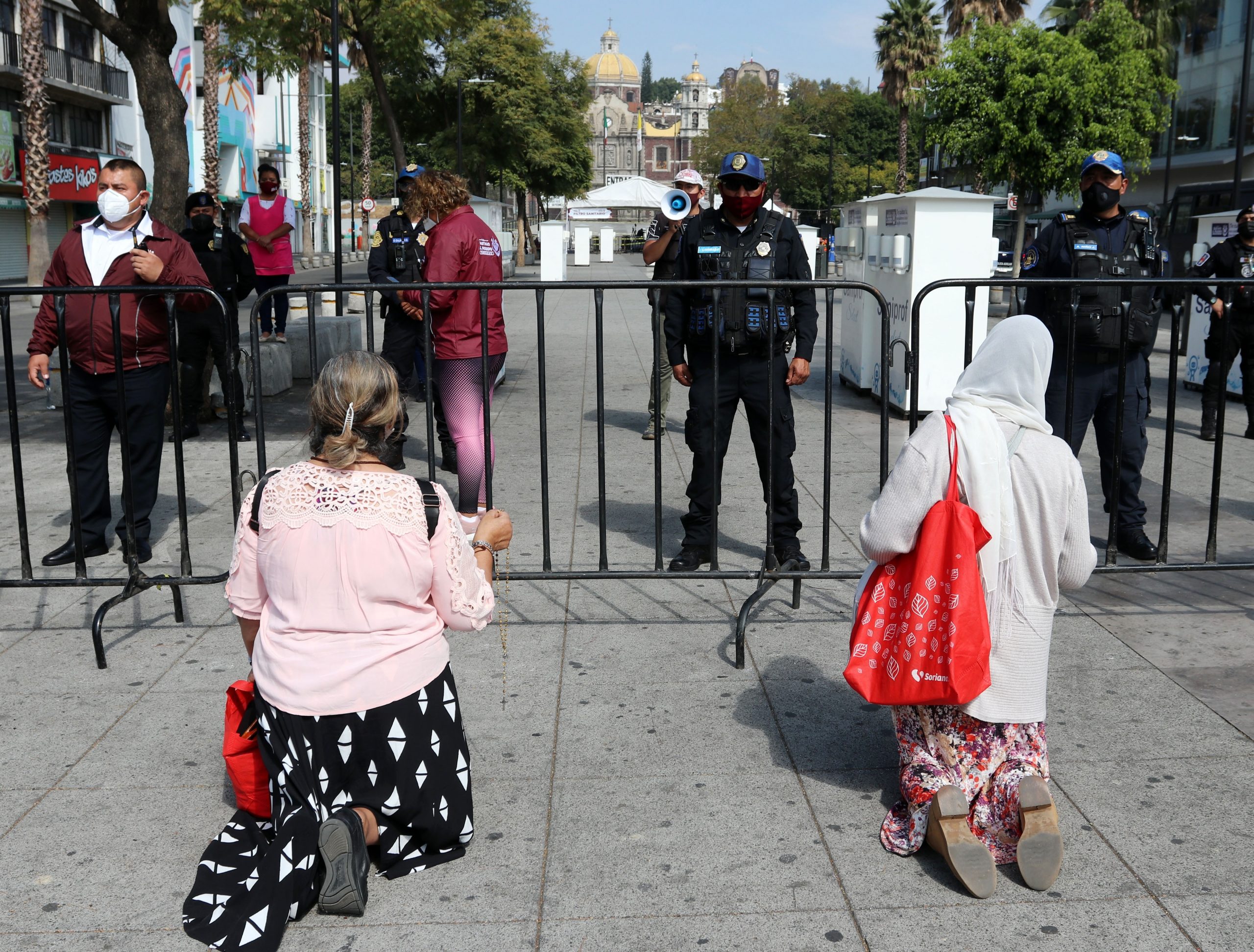 Solo pequeños grupos de fieles se asomaron a las verjas para orar lo más cerca posible de la Guadalupe ante el nerviosismo de policías que rogaban por que se mantuviera la sana distancia.