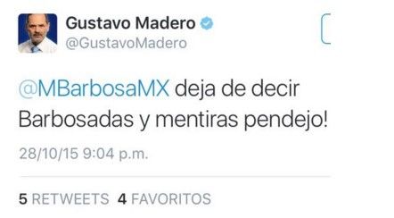 Pero el panista escribió en su cuenta de Twitter un peculiar mensaje en contra de Barbosa.