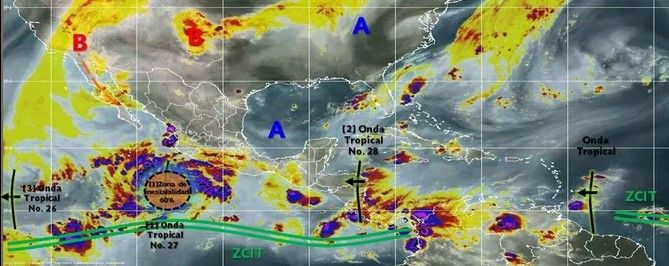 El Servicio Meteorológico Nacional (SMN) prevé que una zona de baja presión asociada a la onda tropical número 27 evolucionará a depresión tropical al suroeste de la costa de Jalisco.