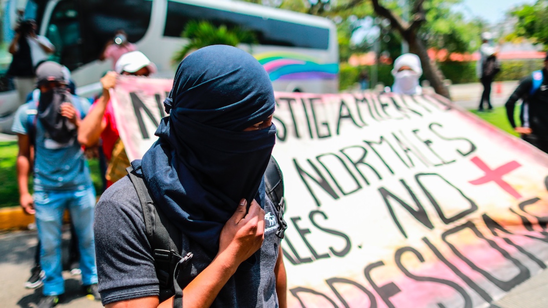 A pesar de este aviso, horas más tarde, unos 50 estudiantes y maestros mexicanos se manifestaron en la Ciudad de México haciendo pintadas y lanzando cohetes en la sede de la Fiscalía General de la República (FGR) para pedir la liberación de los 19 estudiantes encarcelados en Chiapas.