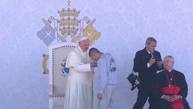 Evila Qintana, una de las reclusas, aseguró ante el papa Francisco que muchos han perdido la esperanza en la rehabilitación de los presos y recordó: “aquí hay seres humanos”.