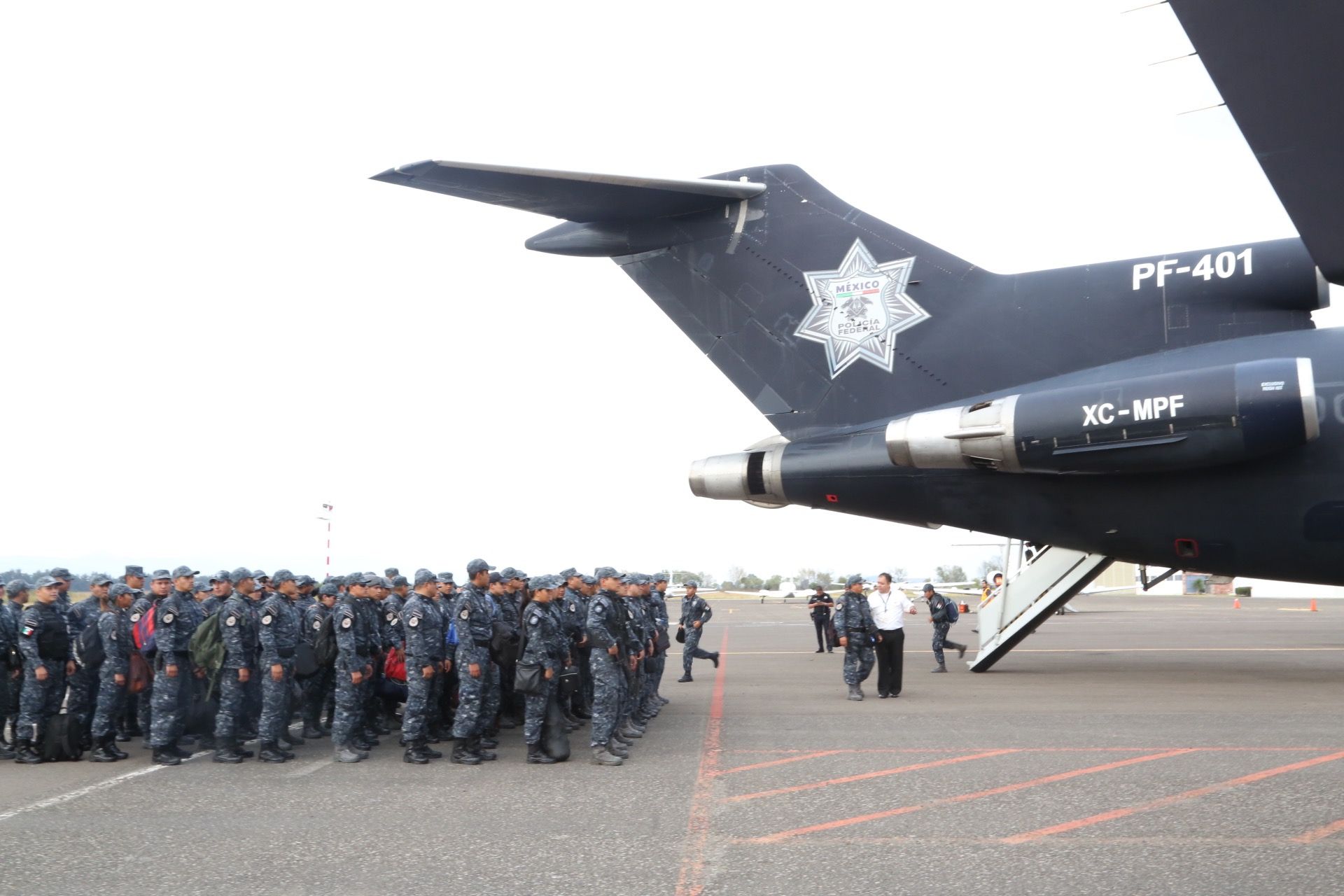 En el aeropuerto de Morelia, aviones Boeing 727 de la Policía Federal de México realizaron hasta cuatro vuelos de ida y vuelta, en los que llegaban con un estimado de 200 efectivos en cada aterrizaje.