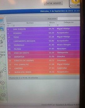 Las zonas afectadas por la lluvia en el Valle de México fueron en las delegaciones Miguel Hidalgo, Cuauhtémoc, Benito Juárez, Álvaro Obregón y Gustavo A. Madero, así como en los municipios de Ecatepec, Naucalpan, en el Estado de México.