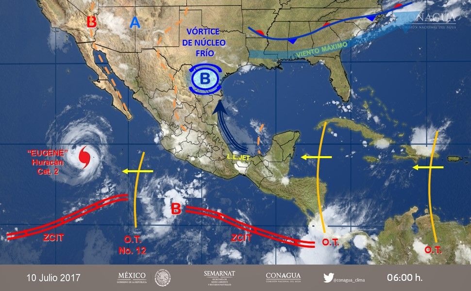 El reporte más reciente del organismo dependiente de la Comisión Nacional del Agua (Conagua) también puntualizó en su registro por regiones, que en la Península de Baja California prevalecerá cielo medio nublado con lluvias dispersas en la región. Además de ambiente muy caluroso y vientos del oeste y suroeste de 20 a 35 kilómetros por hora (km/h) con rachas de 50 km/h.