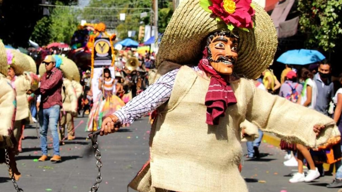 El atuendo se caracteriza por su sombrero de palma tapizado con flores de cempasúchil, el cual llega a pesar 30 kilogramos, además de una máscara, pañoletas coloridas y un capote de zoyate, una hoja de palma seca, en el que se llega a invertir unos 15 mil pesos mexicanos.