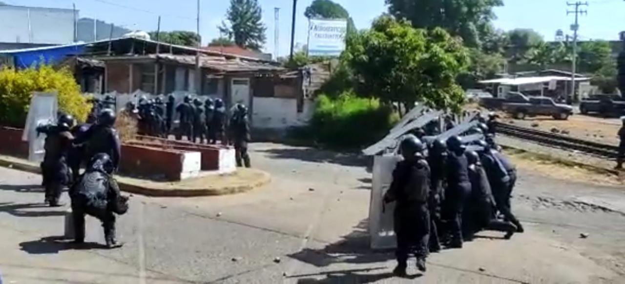 Los integrantes de la CNTE arrojaron piedras y palos a los policías, acción que fue repelida con gases lacrimógenos.
