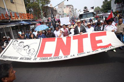 Maestros de la Coordinadora Nacional de Trabajadores de la Educación marchan en la Ciudad de México en el Día del Maestro, exigiendo una mesa de diálogo para negociar la reforma educativa. Previo al inicio de la marcha, los integrantes de la CNTE confirmaron el paro de labores a partir de este día, y que habían anunciado … Continued