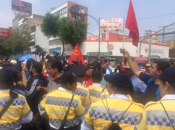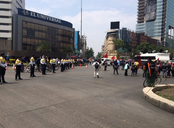 Al llegar a la esquina de Reforma y Bucareli, un contingente de granaderos impidió el paso a los marchistas, quienes no pudieron avanzar hacia Reforma, Juárez o la Plaza de la República, por lo que deliberan cuál será el paso a tomar.