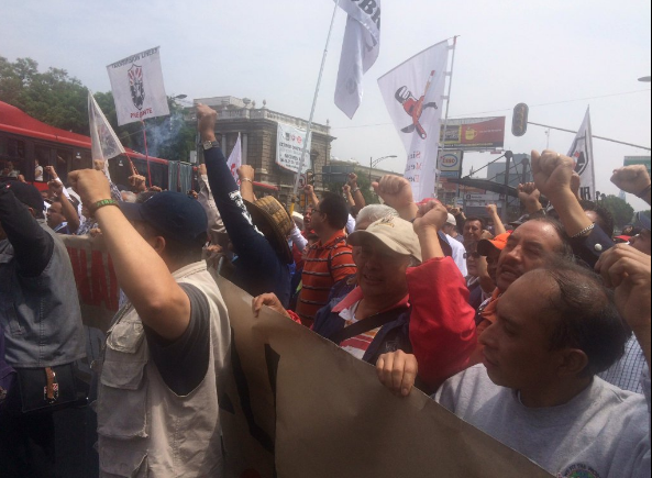 Tras el mitin, los maestros se encaminaron hacia la Secretaría de Gobernación, a pesar de la contingencia ambiental decretada desde la tarde del sábado en la ciudad.