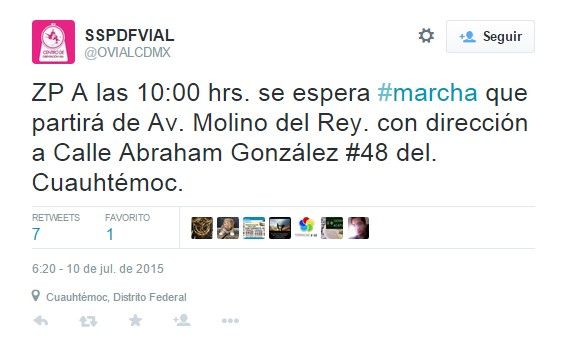 Por su parte, la Secretaría de Seguridad Pública del D.F. pidió a través de su cuenta de Twitter que la ciudadanía evite la zona.