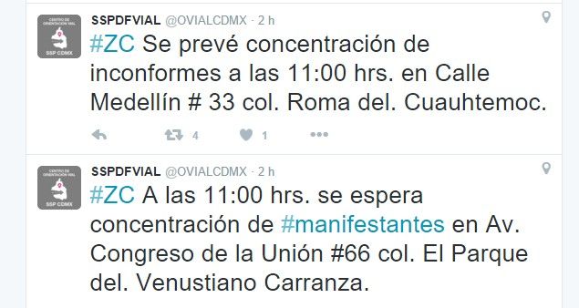 En su cuenta de Twitter @OVIALCDMX, la dependencia advirtió que a la misma hora otro contingente iniciará su recorrido hacia el Zócalo capitalino desde el Ángel de la Independencia.