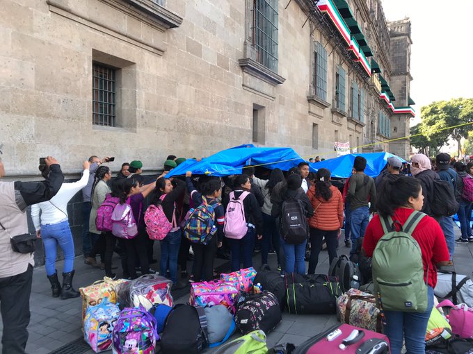 Manifestantes afuera de Palacio Nacional en espera de diálogo con López Obrador agredieron a oficiales de la policía militar cuando les impidieron instalar campamento
