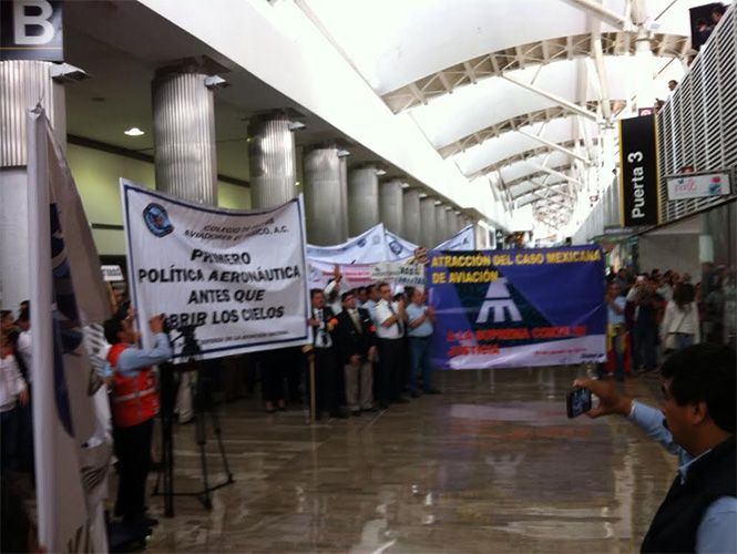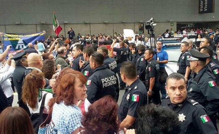 Los manifestantes, pertenecientes a 3 sindicatos de la existan Mexicana de Aviación, intentaron bloquear Circuito Interior, para posteriormente cerrar el paso de la entrada al AICM, en la Terminal 1, lo que provocó el retraso de varios pasajeros.