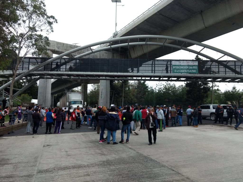 Caminos y Puentes Federales de Ingresos y Servicios Conexos (CAPUFE) informó que un grupo de manifestantes bloquearon esta tarde la Autopista México-Cuernavaca en dirección a Morelos, a la altura del kilómetro 23, sobre la caseta de cobro y Camino Santiago, Tepalcatlalpan.
