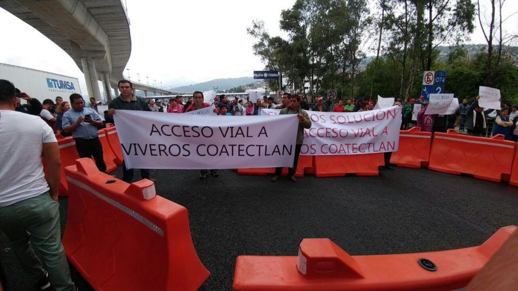 De acuerdo con los primeros reportes, habitantes de la zona se manifiestan para pedir solución del acceso vial a Viveros Coatectlan.