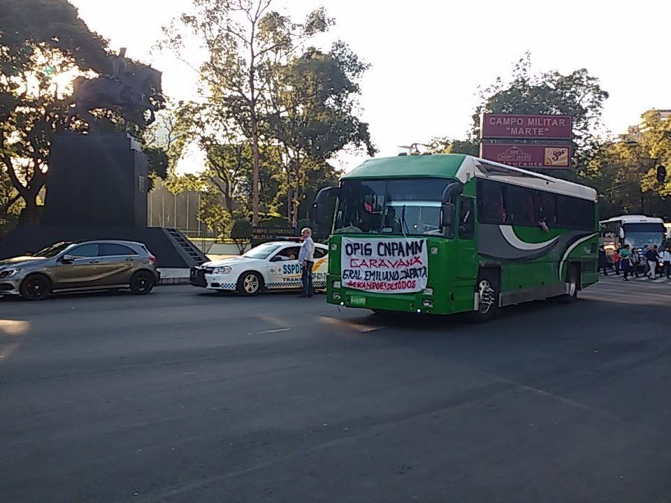Llegan autobuses de Campesinos al Auditorio Nacional y colapsan el Paseo de la Reforma. pic.twitter.com/4T3iClMyjb
