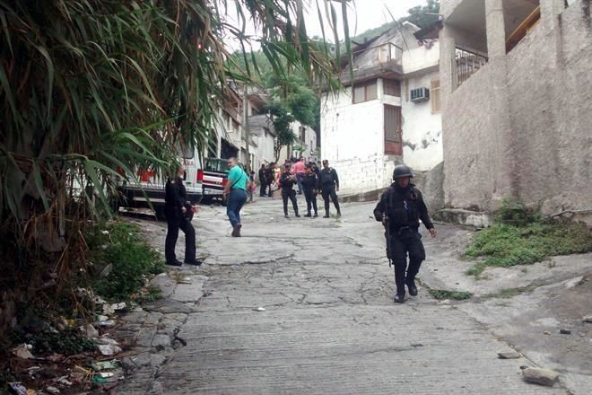 La zona se encuentra resguardada por militares, policías estatales y un helicóptero que sobrevuela el área.