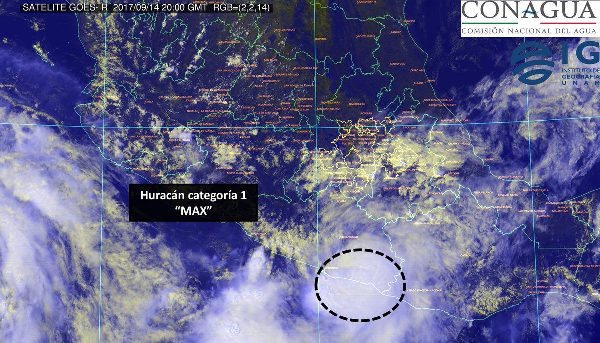 Max, como huracán categoría 1 en la escala Saffir-Simpson, se ubicó aproximadamente a 85 kilómetros al suroeste de Acapulco con vientos de 120 kilómetros, informó el Servicio Metereológico Nacional.