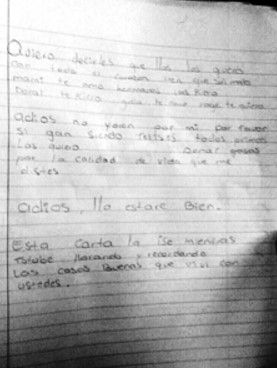 Esta señaló los hechos a los uniformados además de agregar que a un costado de la cama se hallaba una carta póstuma que el menor dejó para sus familiares.