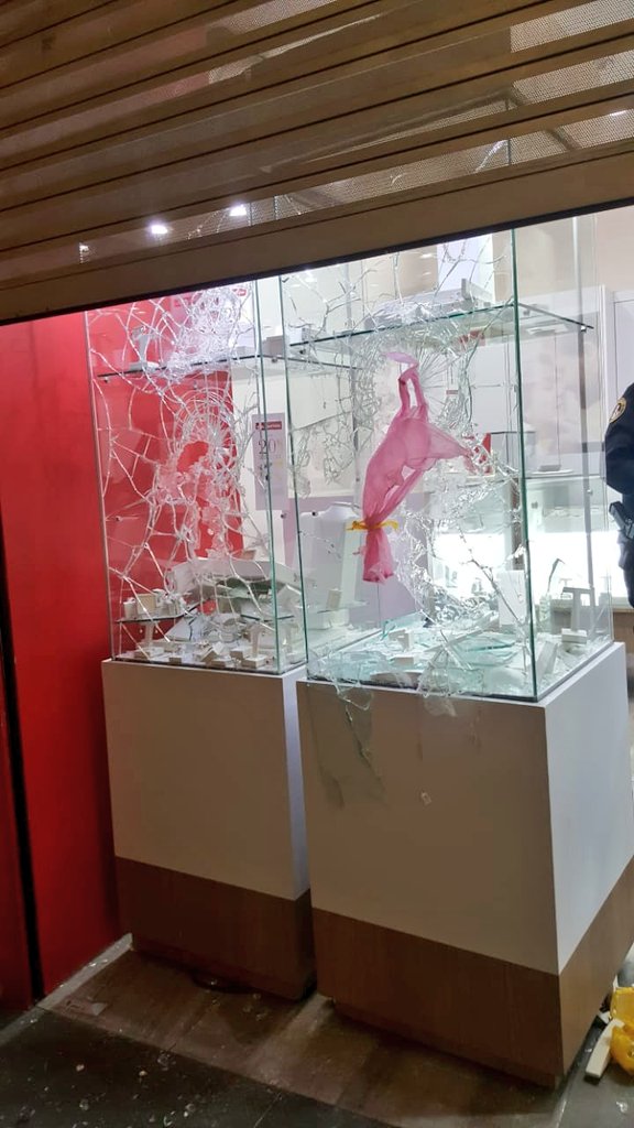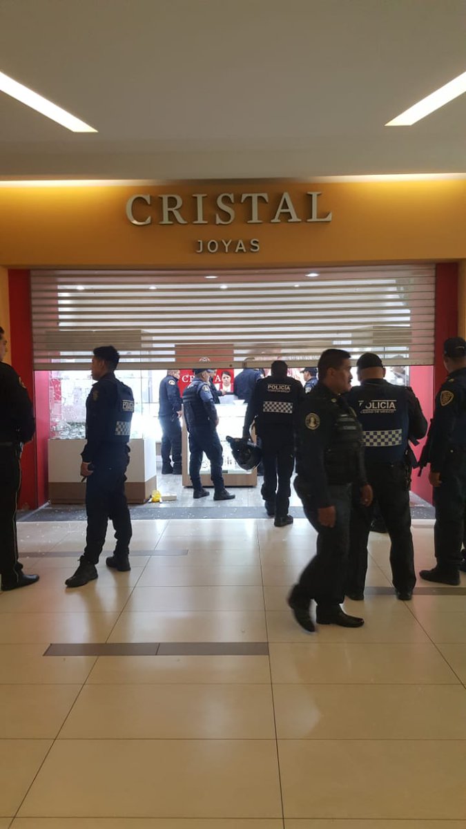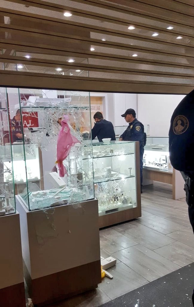 Utilizando mazos, sujetos armados ingresaron a joyería Cristal, en la plaza Portal Centro. Rompen vitrinas y sustraen mercancía, escapando del lugar