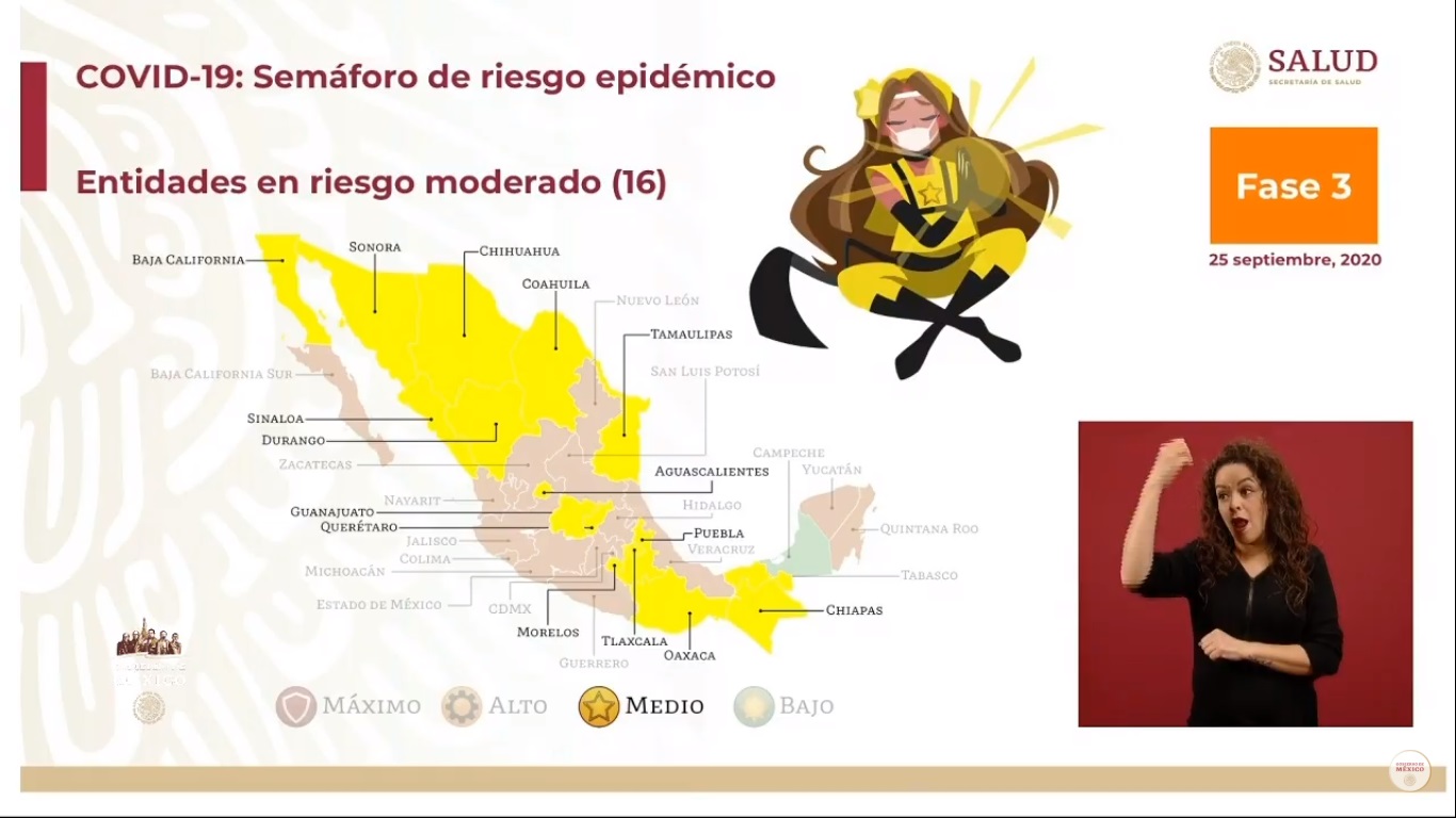 Situación del covid en México al 25 de septiembre. Foto de SSa