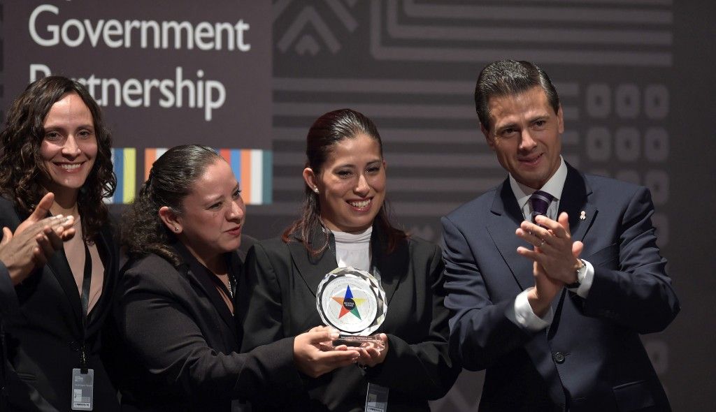 Por otra parte, el mandatario federal entregó los Premios de Gobierno Abierto a las iniciativas más destacadas a nivel mundial en materia de gobierno abierto y expresó su felicitación a los ganadores, entre los que figura el proyecto de México sobre guarderías infantiles que realizaron Georgina Teresa Varela García, Fabiola Segovia Trigueros y Ximena Valbuena Castillo.
