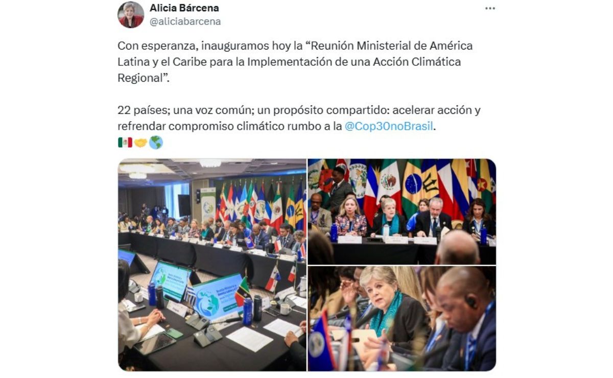 En el arranque de la primera Reunión Ministerial de América Latina y el Caribe para la Implementación de una Acción Climática Regional, que se lleva a cabo este 25 y el 26 de agosto en la Ciudad de México, Bárcena instó a los 22 países presentes a respaldar “totalmente a la presidencia de la COP30, a Brasil, a fortalecer el liderazgo” regional.