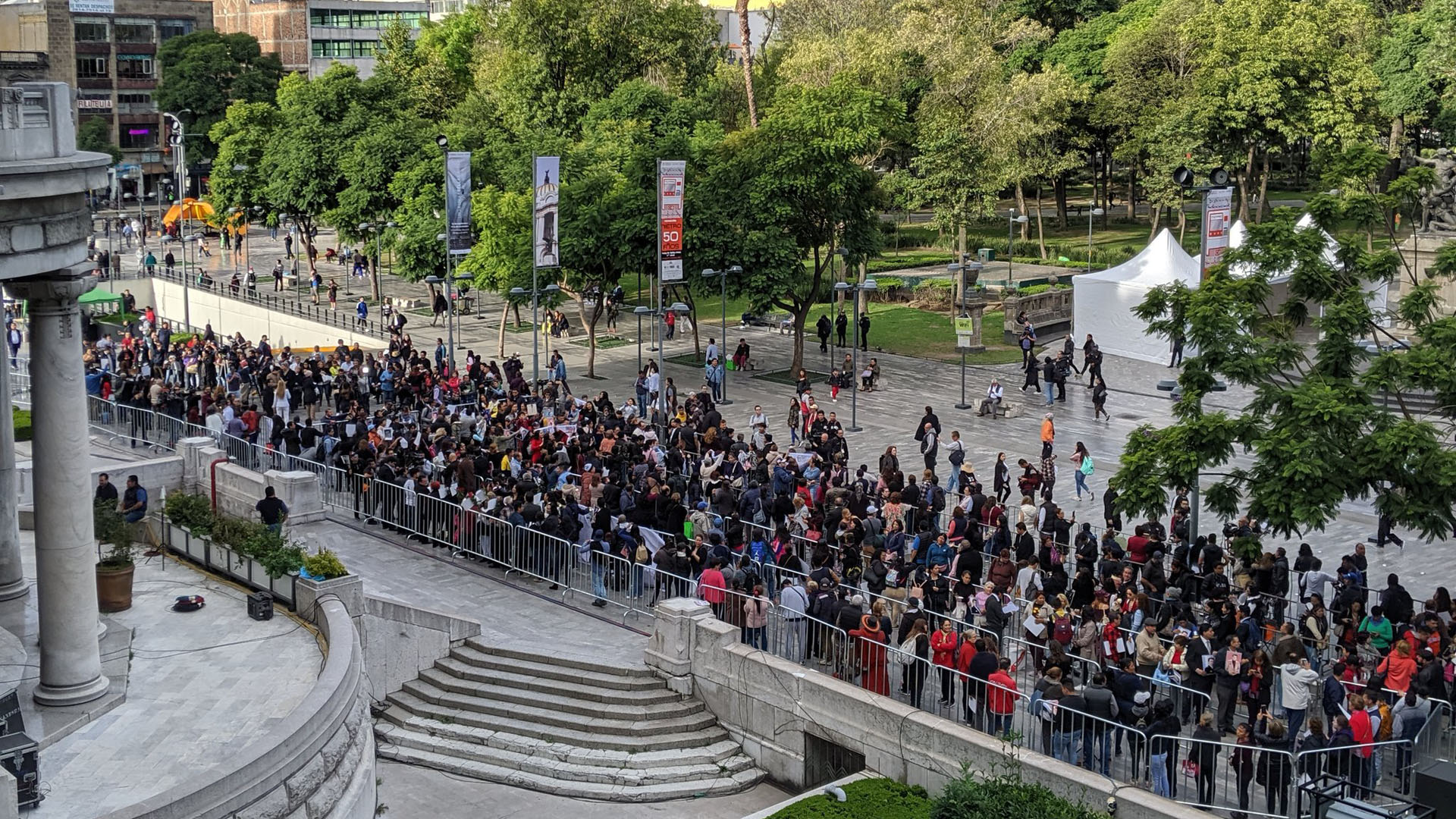 Cientos de personas hacen fila para ingresar al Palacio de Bellas Artes y dar el último adiós al cantante José José. Foto de @alefrausto
