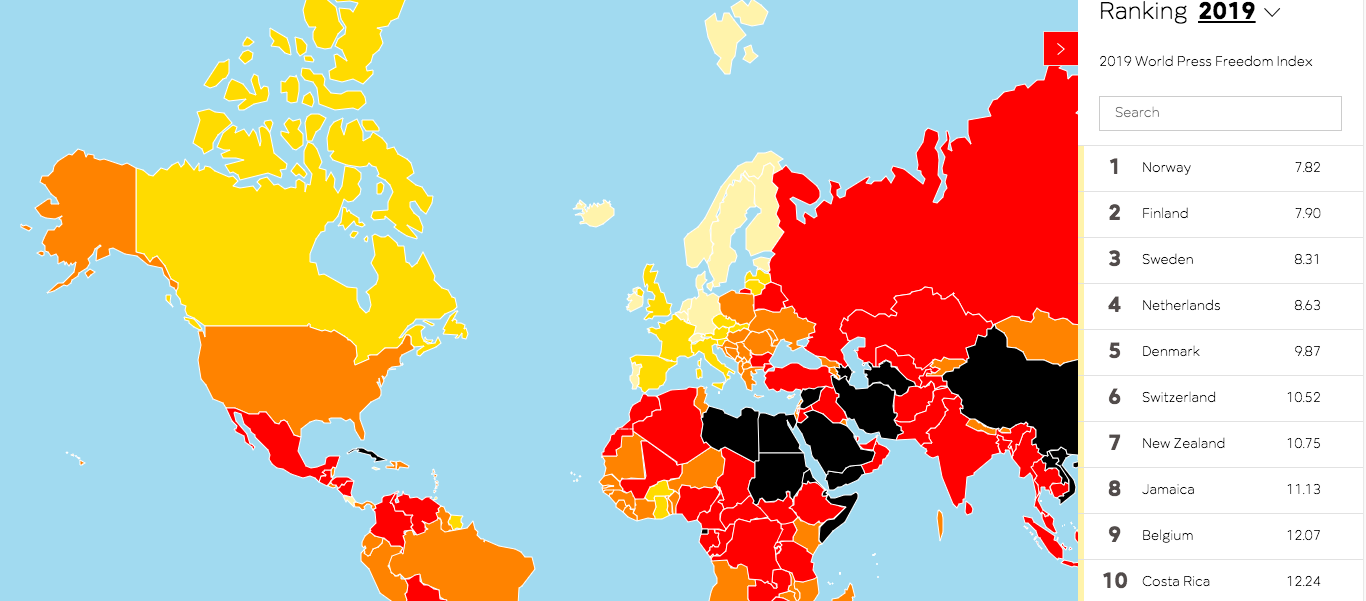 De acuerdo con RSF Noruega conserva por tercer año consecutivo el primer puesto como país seguro para periodistas seguido de Finlandia y Suecia