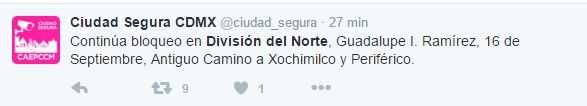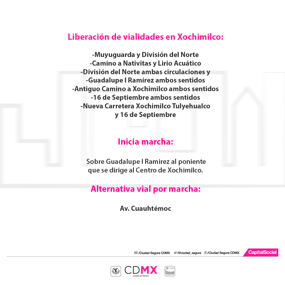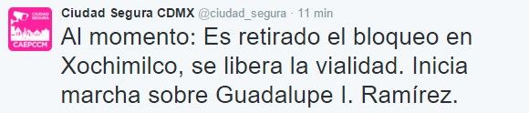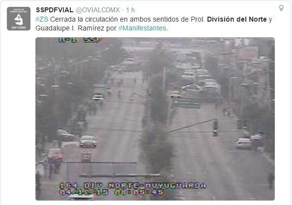 Desde las 09:00 h de este viernes, un grupo de microbuseros identificados como Asociación de Transportistas Unidos en Xochimilco, A.C. bloqueó la Prolongación División del Norte y las calles de Guadalupe I. Ramírez, 16 de Septiembre y el Antiguo Camino a Xochimilco y Periférico.