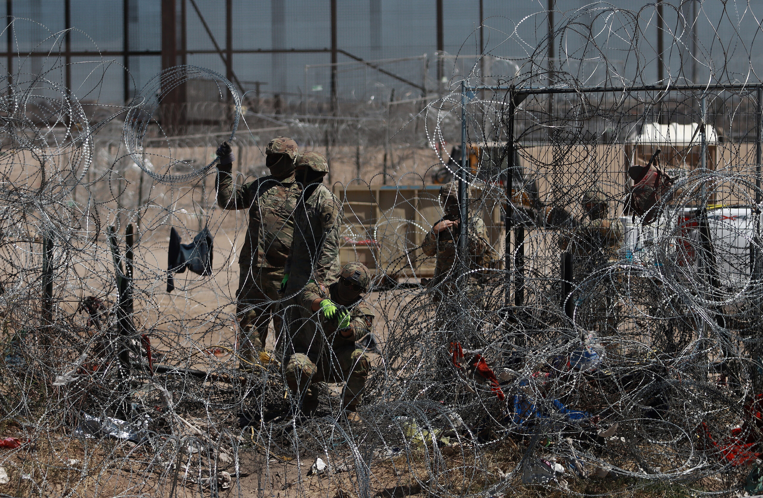 Migrantes varados en la frontera de México denunciaron que la Guardia Nacional de Texas colocó una nueva cerca precedida por una barricada de alambres con navajas que llega hasta la orilla del río Bravo para impedirles acampar en territorio estadounidense.
