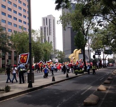 Ante la desaparición del Partido del Trabajo tras no conseguir el porcentaje mínimo de votos, militantes del partido de izquierda marcharon esta tarde sobre Paseo de la Reforma para protestar por la disolución del PT.