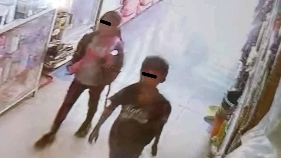 Cámaras de seguridad los captaron en un primer momento junto a una mujer y otro menor. Posteriormente los niños pasaron junto a una papelería.