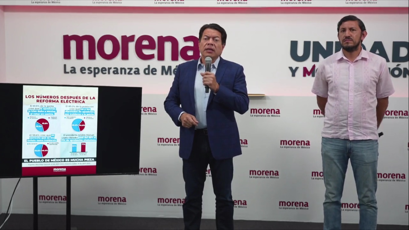 En conferencia de prensa presentó una encuesta que arrojó que 61.5 por ciento de los participantes cree que la oposición “le hizo daño a México” al votar contra la Reforma Eléctrica, en tanto que 65 por ciento afirma que los diputados son “traidores a la patria“.