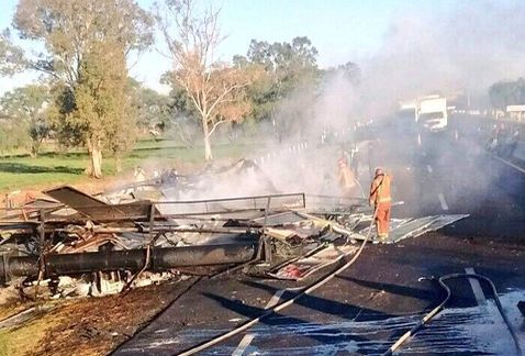 Al menos una persona murió calcinada como resultado de una volcadura de un tráiler en el Circuito Exterior Mexiquense, la cual se registró a la altura del kilómetro 14.