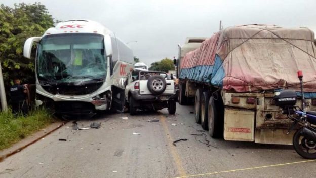 El regidor del municipio de Santa Marìa Petapa buscaba rebasar a un tráiler cuando se estrelló con un autobús