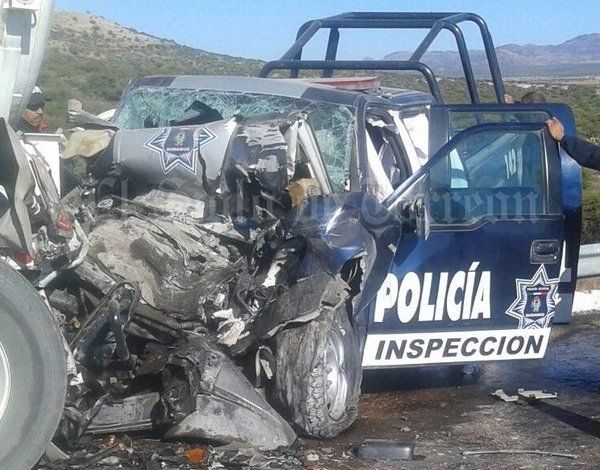 El accidente ocurrió la mañana de este sábado cuando los policías estatales impactaron con una pipa estacionada por una falla mecánica