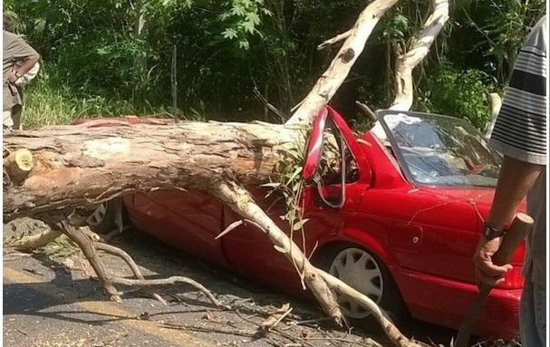 El árbol, de aproximadas tres toneladas cayó encima del Tsuru y dejó prensadas a las mujeres, por lo que no se pudo hacer nada para ayudarlas.