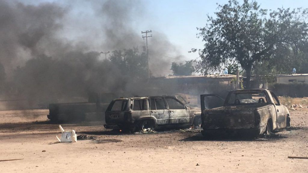 Las comunidades de Loma de Bácum y Loma de Guamuchil sostuvieron un enfrentamiento la tarde del viernes, el cual dejó un saldo de una persona murió, ocho más resultaron lesionadas y 13 vehículos incendiados.