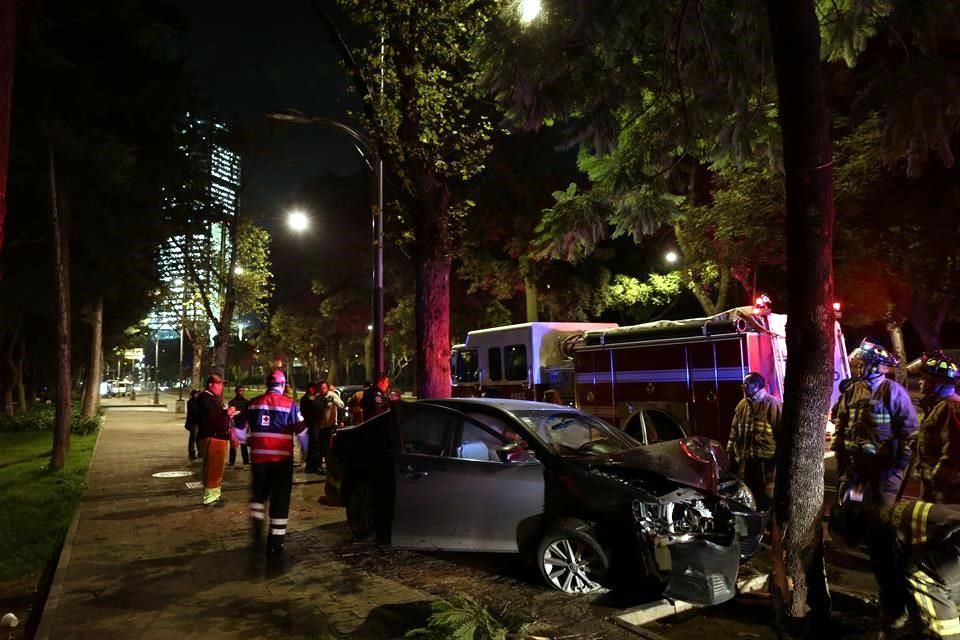 La madrugada del día de hoy, en Avenida Paseo de la Reforma cerca del cruce del Circuito Gandhi en las inmediaciones del Bosque de Chapultepec Primera Sección, una mujer que conducía un Toyota Camry color gris impactó a una camioneta BMW del mismo color, perdió el control y chocó contra un árbol.
