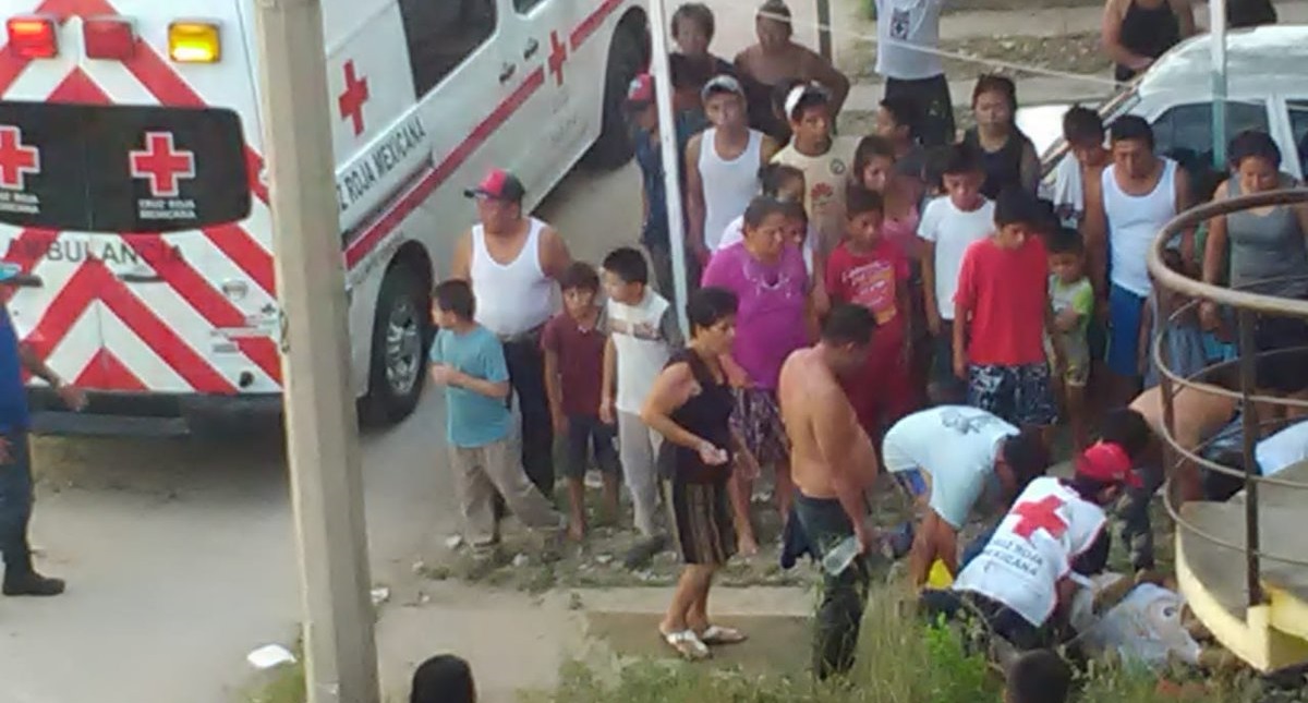 Una mujer se lanzó del tercer piso de un edificio para salvarse del incendio que consumía su departamento, en Villahermosa, Tabasco.