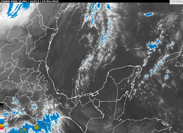 La dependencia de la Conagua indicó que la masa de aire frío asociada al sistema frontal comenzará a originar evento de norte a partir de la tarde, con rachas superiores a 60 kilómetros por hora en las costas de Tamaulipas y norte de Veracruz.