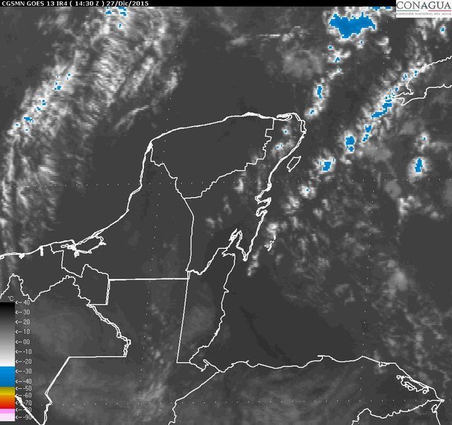 Para la Península de Yucatán se prevé cielo despejado a medio nublado, probabilidad de lluvias aisladas de 20 por ciento en la región, temperaturas calurosas y viento del sur (surada) con rachas superiores a 60 kilómetros por hora.