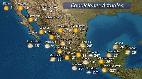 La Mesa del Norte mostrará cielo medio nublado, probabilidad de precipitaciones aisladas de 60 por ciento en Chihuahua, Coahuila, Durango, Nuevo León y San Luis Potosí, temperaturas frías con heladas por la mañana y noche.