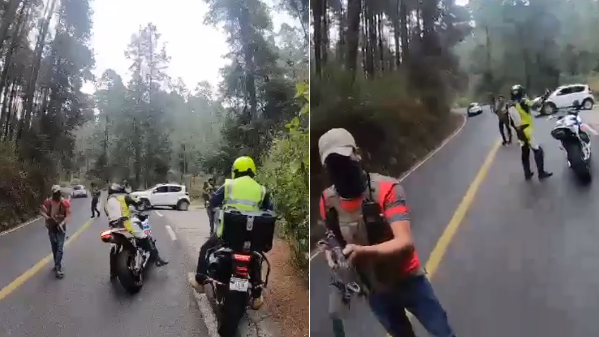 El video del atraco se hizo viral en redes sociales, donde se puede ver cómo sujetos con armas largas obligan a los motociclistas a descender de sus vehículos.
